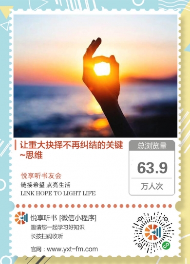 标签: 悦享听书友会 READ MORE“人们如果知道他每天花多少时间去思考,都会大吃一惊的,会觉得不可思议!” ——麦克斯韦尔